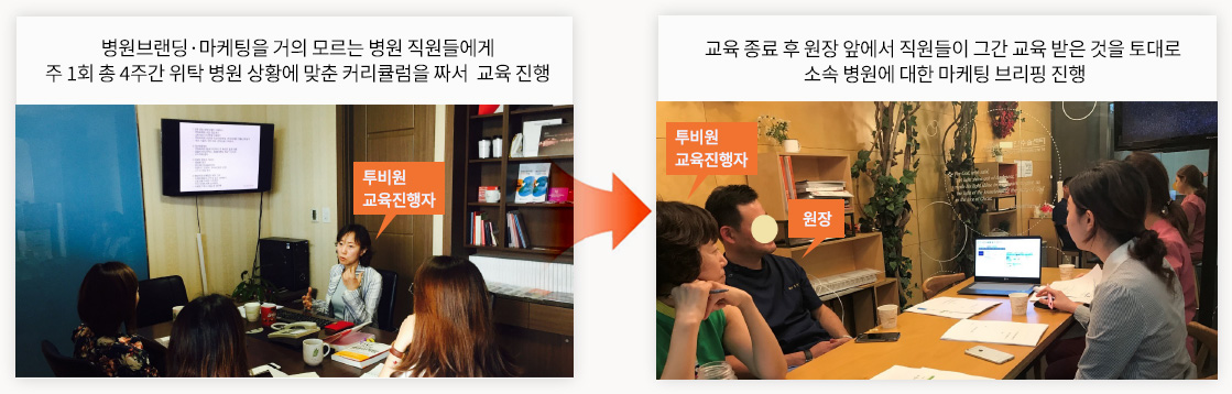 교육 위탁을 했던 병원 원장의 보람, 원내 마케팅팀 업무능력 고양, 병원마케팅 효율성 증대,